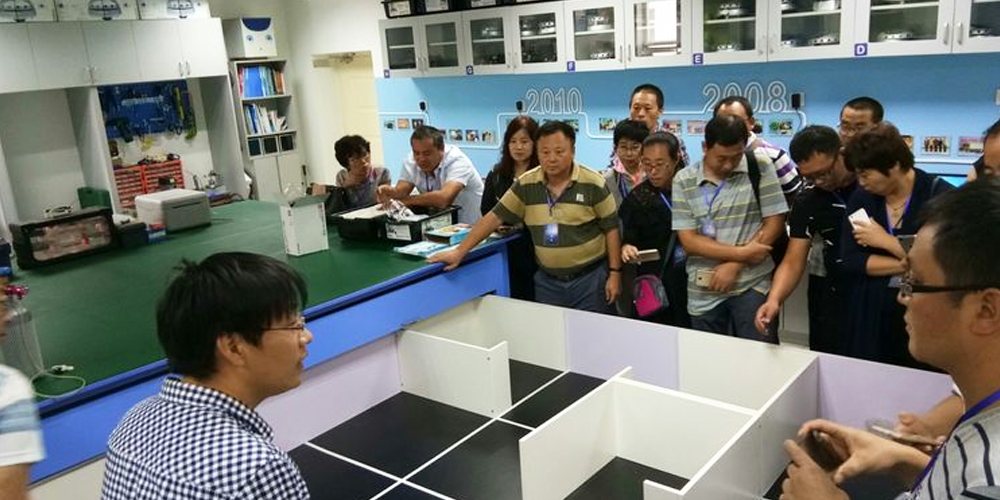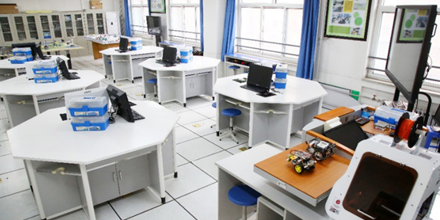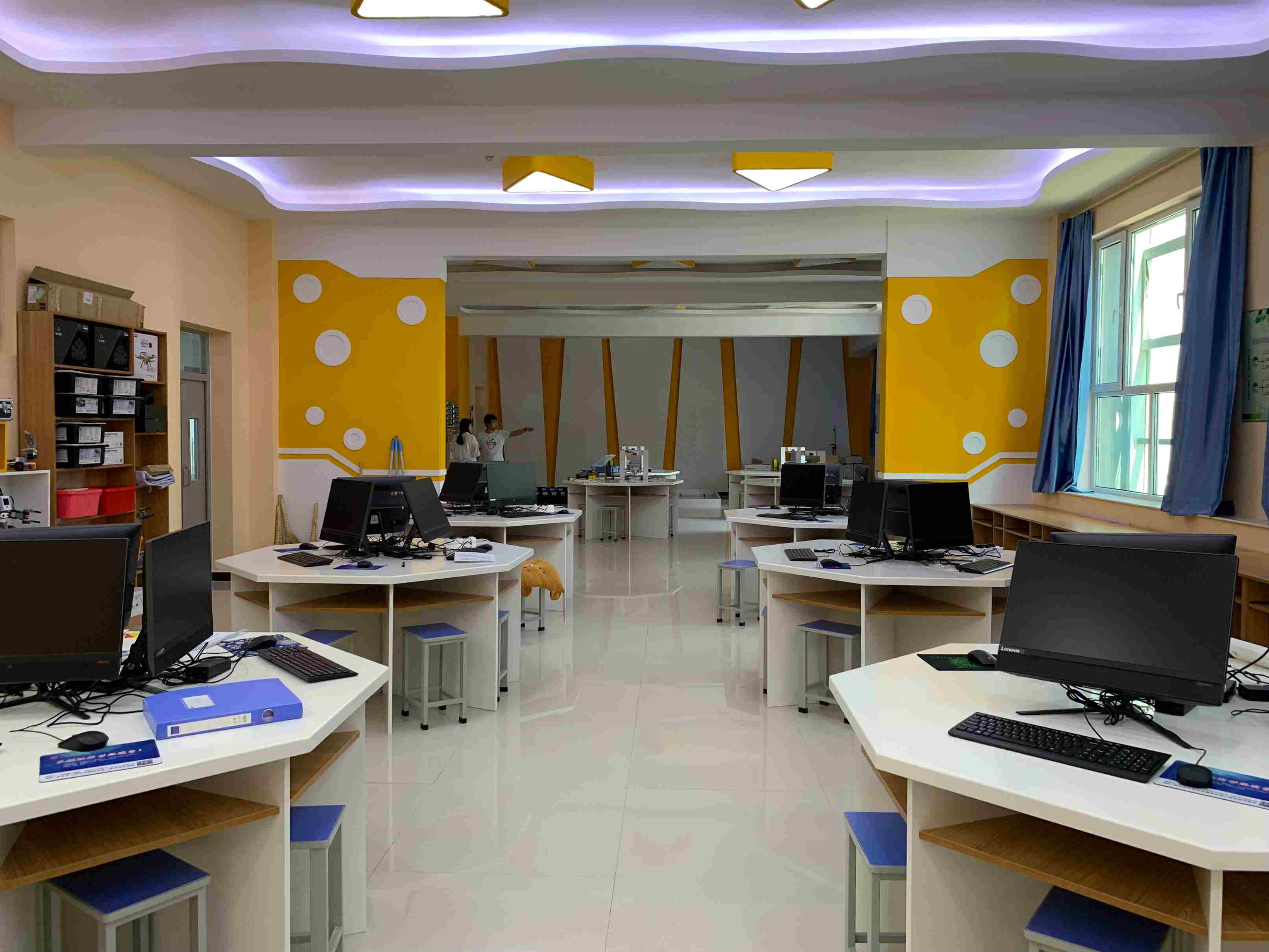 阿斑兔將機(jī)器人、創(chuàng)客、3D打印、航模等融為一體,研發(fā)、設(shè)計具有情景體驗、創(chuàng)意生成、原型制作、展示交流等多功能為一體的機(jī)器人教育教學(xué)場所,即創(chuàng)新教育實驗室,針對不同年齡段學(xué)生的特點、學(xué)校學(xué)情等,為其提供足夠的空間、設(shè)備和完善的課程體系。